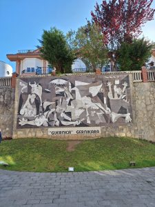 Unweit dieses Wandbildes befindet sich das Friedensmuseum von Gernika mit einer großen Dauerausstellung zu diesem Bombenangriff vom 26. April 1936 und den verheerenden Folgen für diese Stadt und deren Bevölkerung.